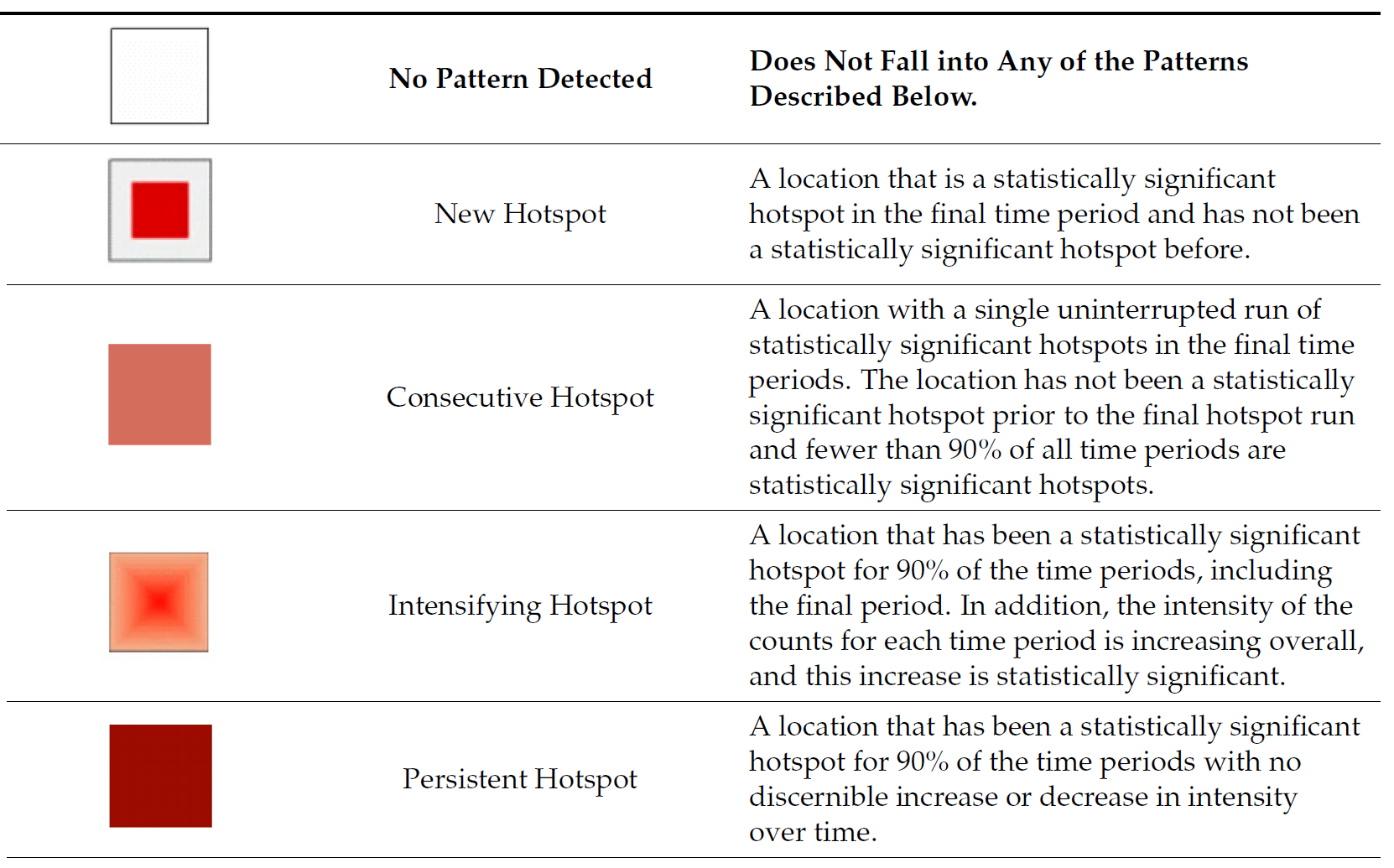 In this exercise, we will explore Emerging Hot Spot Analysis (EHSA), a spatio-temporal analysis method for identifying and categorizing hot and cold spot trends over time in a spatial dataset.