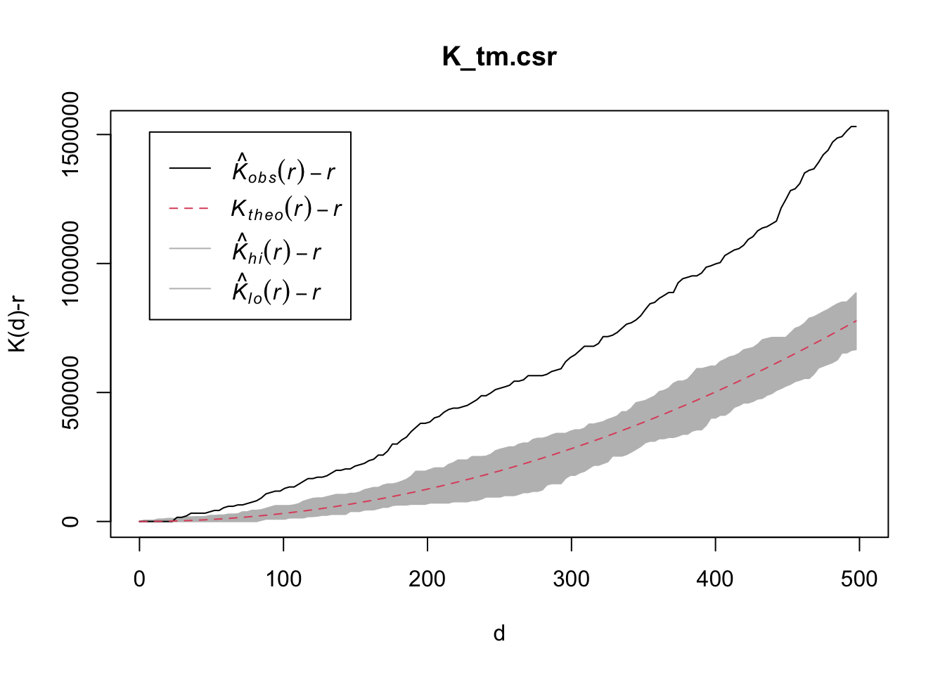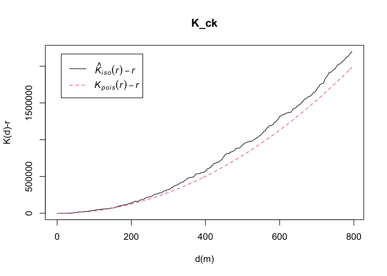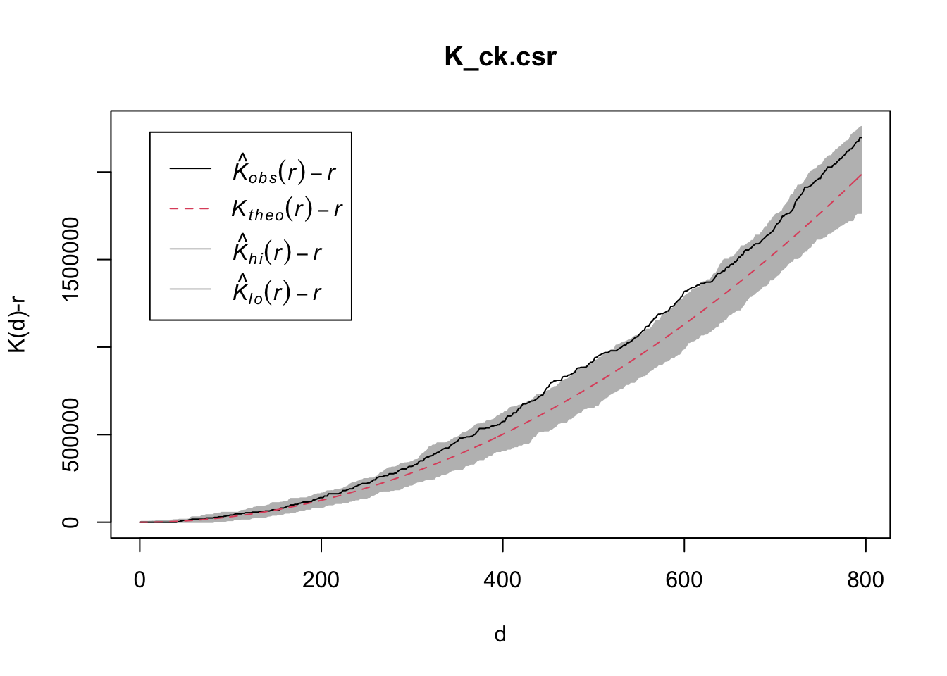 plot(K_ck.csr, . - r ~ r, xlab="d", ylab="K(d)-r")