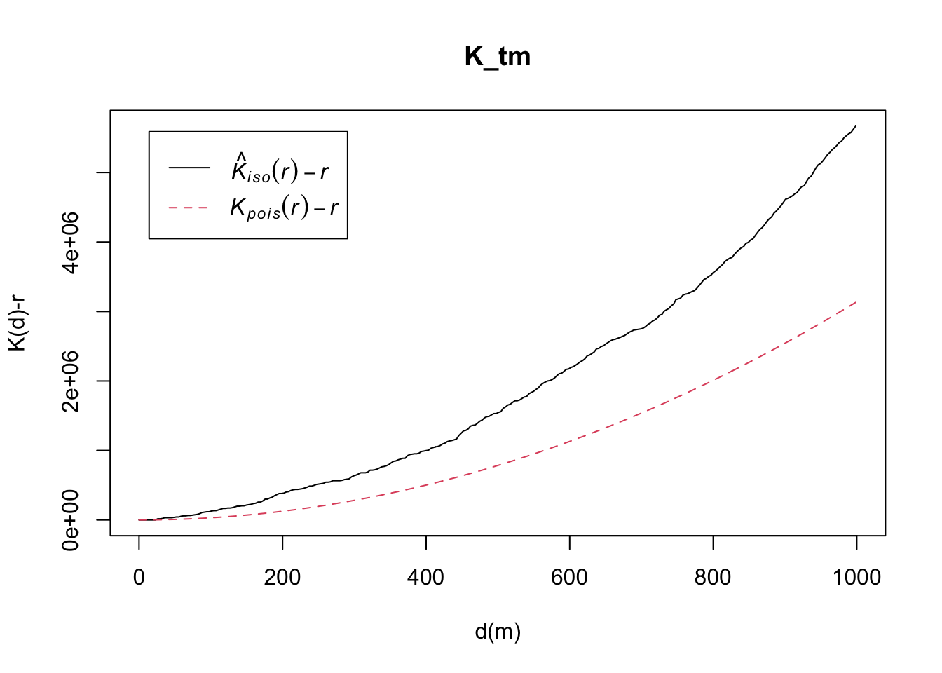 plot(K_ck, . -r ~ r, ylab= "K(d)-r", xlab = "d(m)")