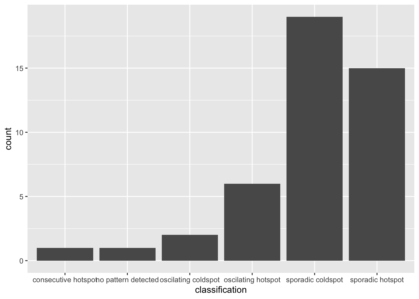 ggplot(data = ehsa_significant, aes(x = classification)) +