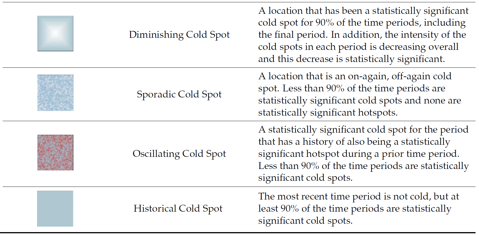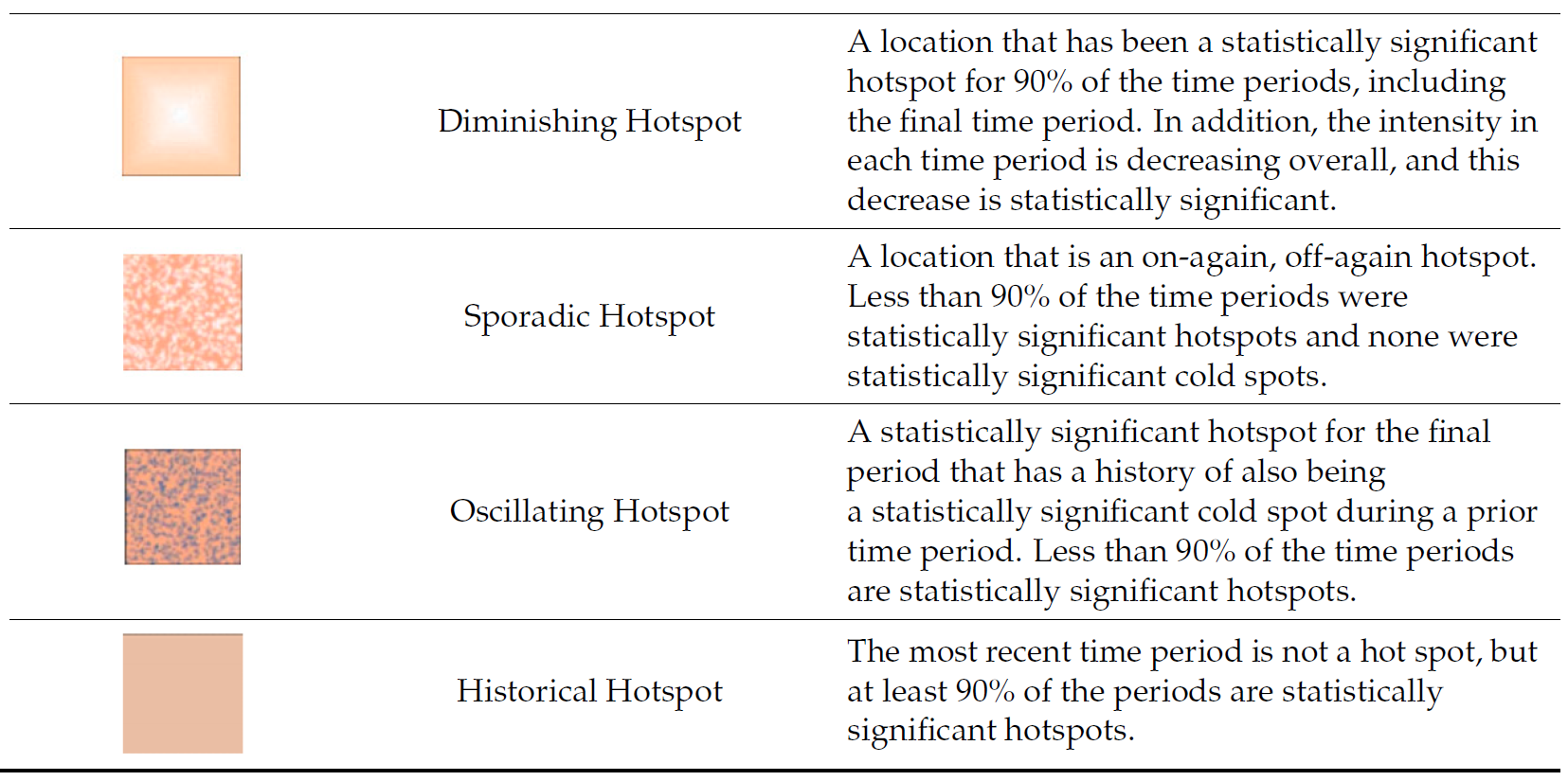 In this exercise, we will explore Emerging Hot Spot Analysis (EHSA), a spatio-temporal analysis method for identifying and categorizing hot and cold spot trends over time in a spatial dataset.